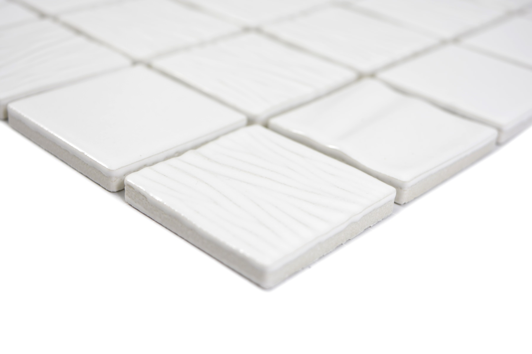 All areas, which a heavily exposed and also submerged in water. For example shower floors or pools. Ceramic mesh mounted mosaics can only be installed in pools when installed correctly (e.g. all areas with Epoxy glue).