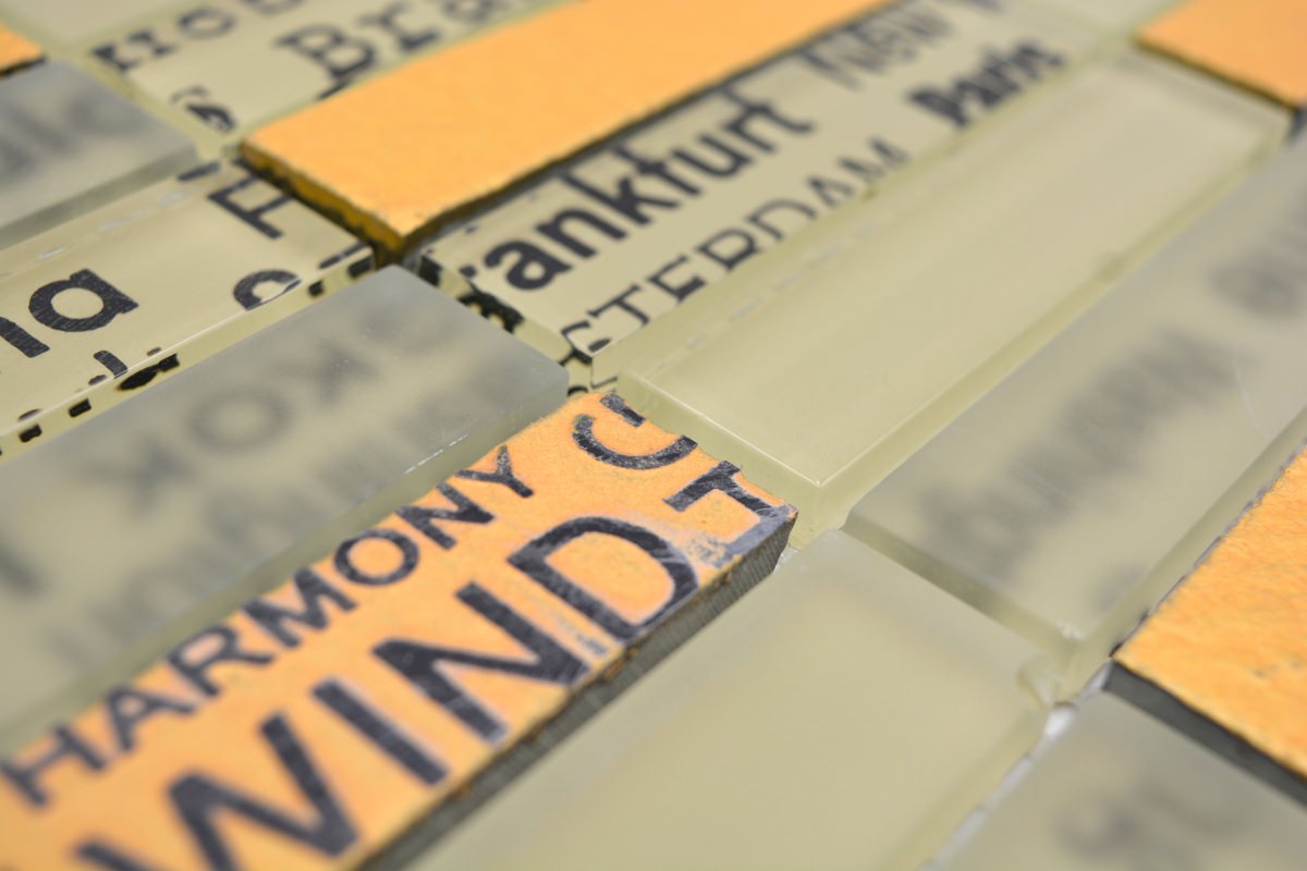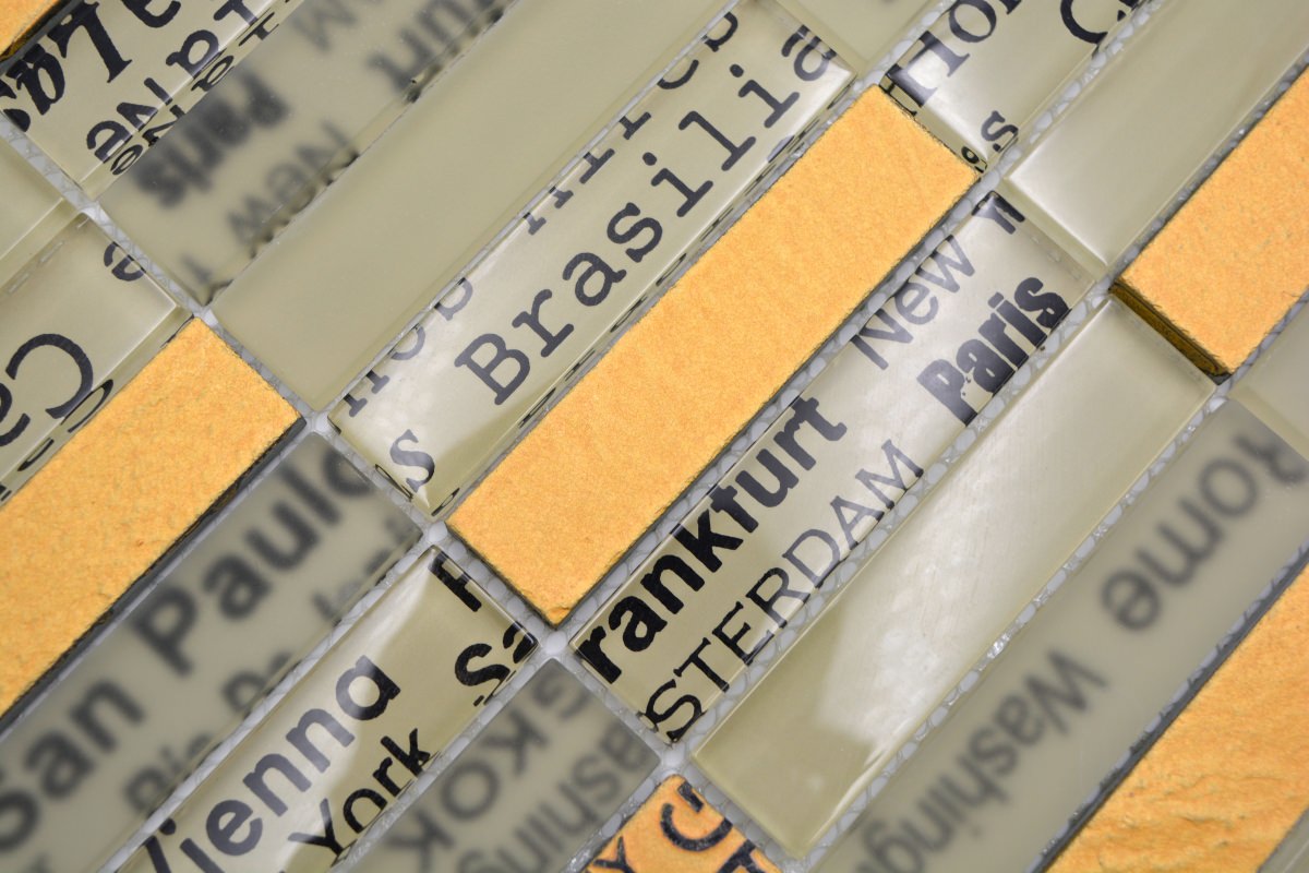 All mosaic areas, which are sometimes exposed by very small amounts of water. For example the backsplash in the kitchen or behind the sink.