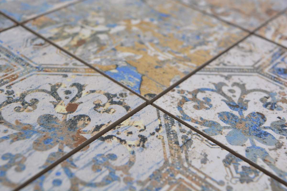 All mosaic areas, which are sometimes exposed by very small amounts of water. For example the backsplash in the kitchen or behind the sink.