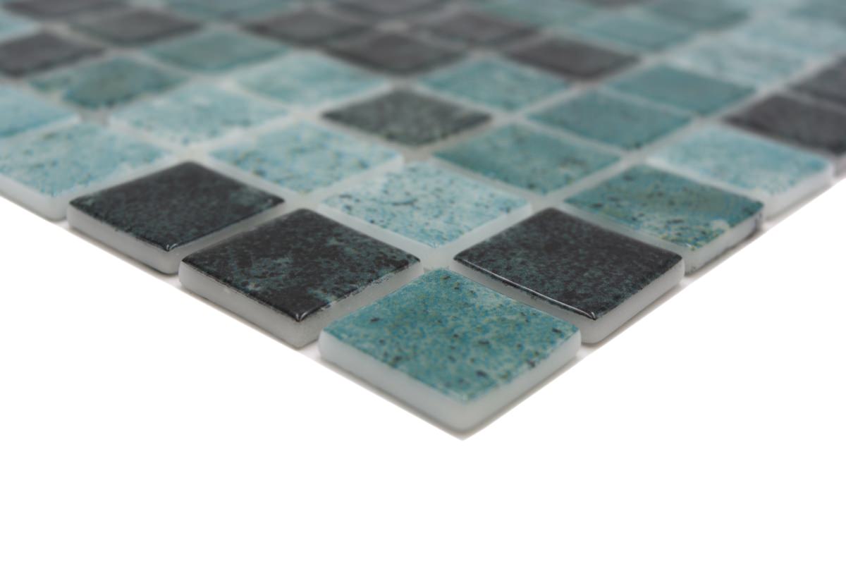 All areas, which a heavily exposed and also submerged in water. For example shower floors or pools. Ceramic mesh mounted mosaics can only be installed in pools when installed correctly (e.g. all areas with Epoxy glue).