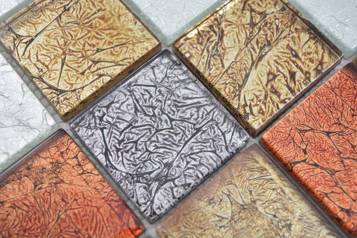 All mosaic areas, which are sometimes exposed by very small amounts of water. For example the backsplash in the kitchen or behind the sink.