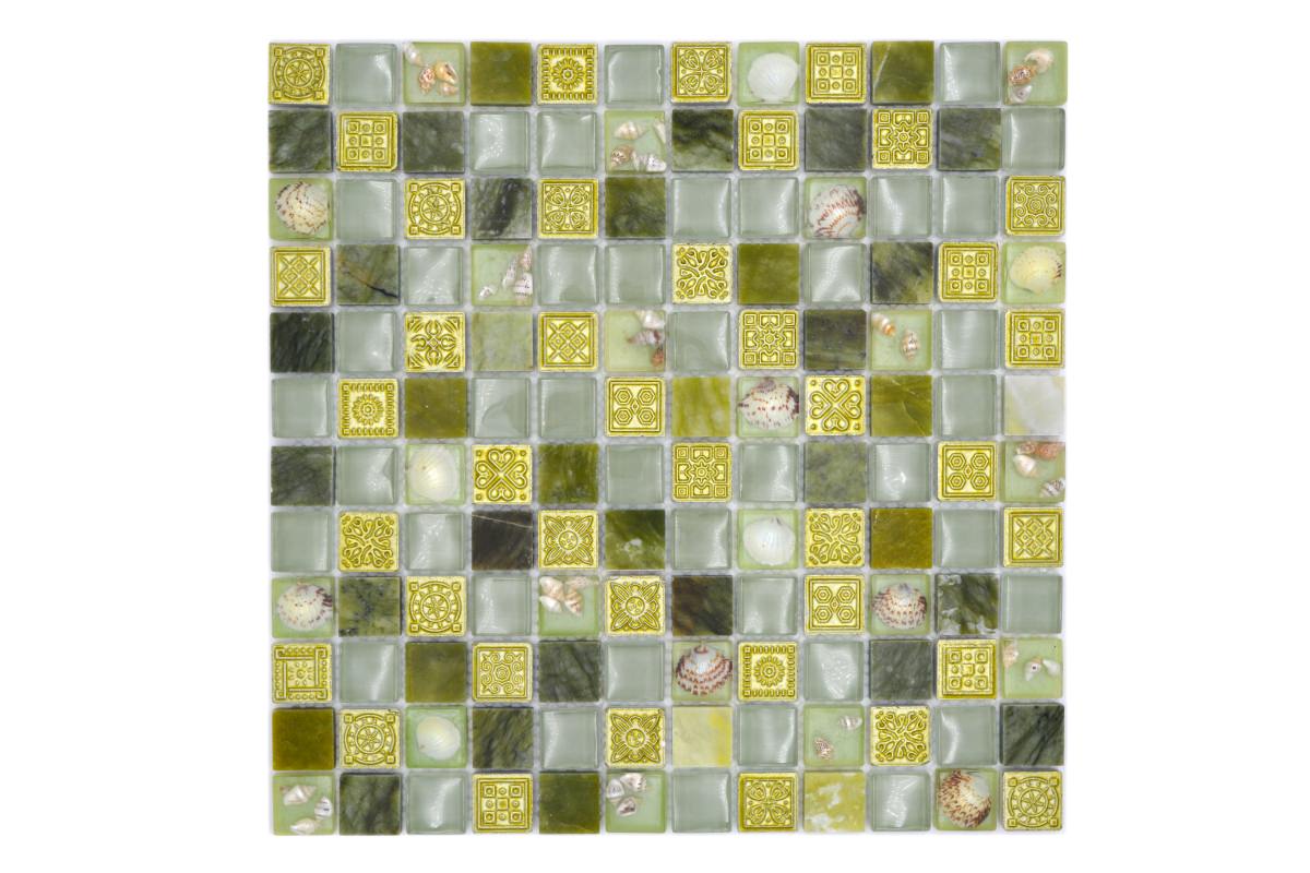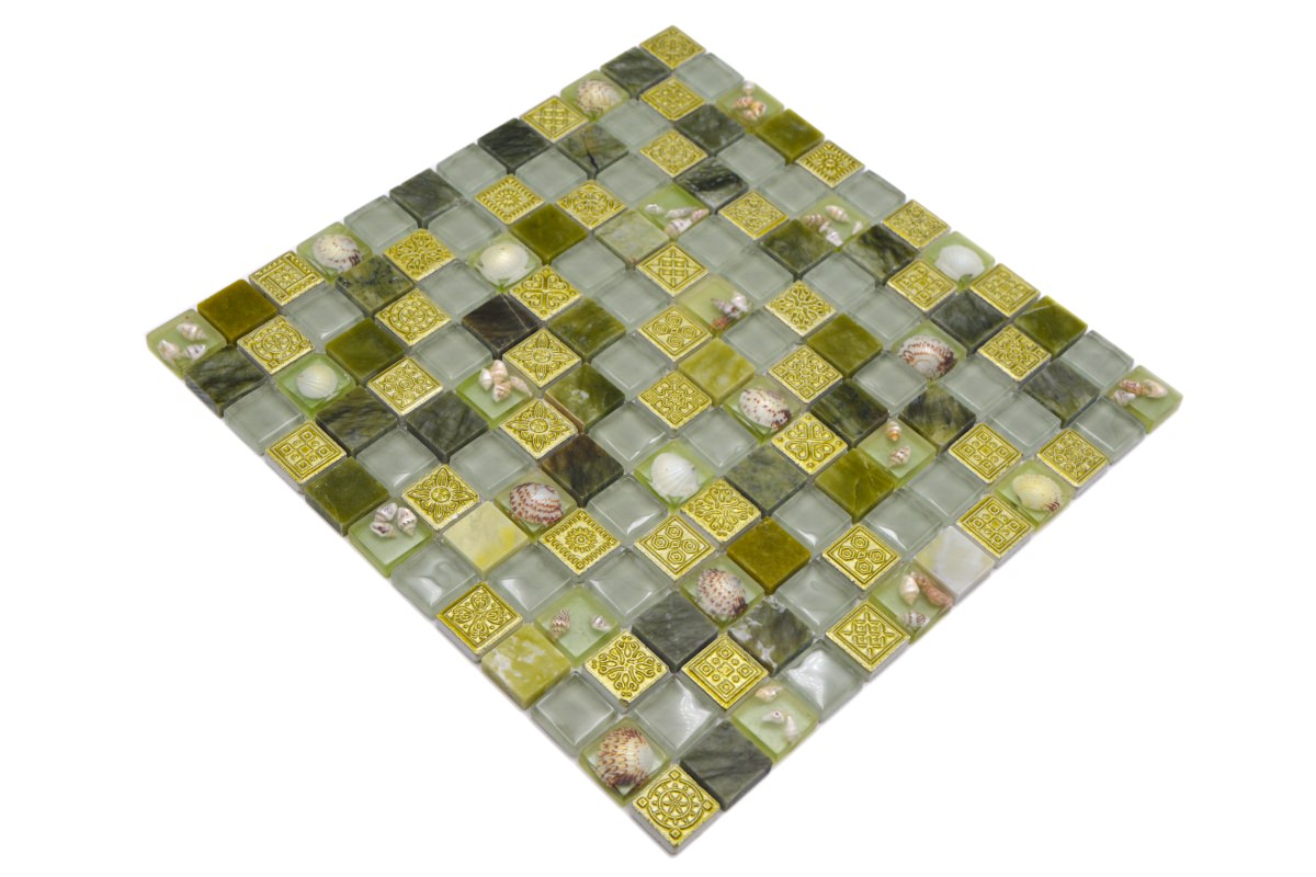 All mosaic areas, which are sometimes exposed by very small amounts of water. For example the backsplash in the kitchen or behind the sink.