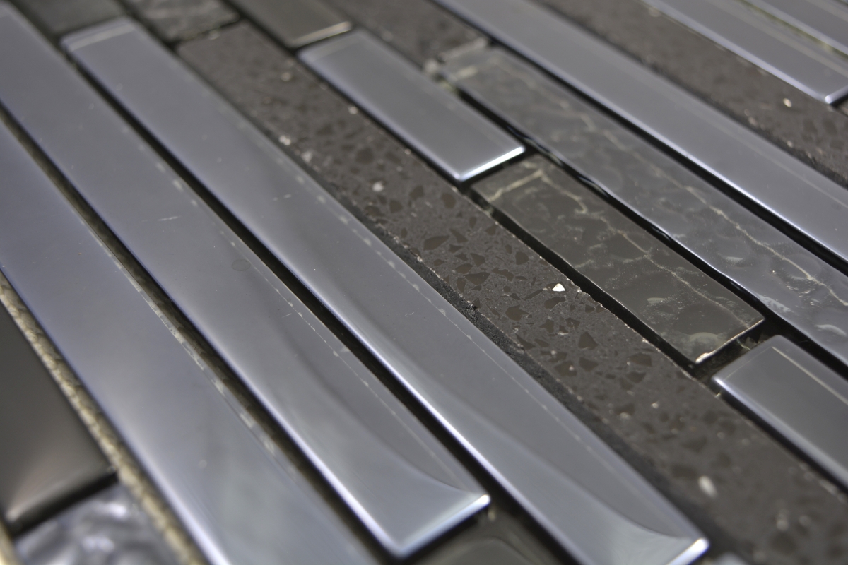 All mosaic areas, which are sometimes exposed by very small amounts of water. For example the backsplash in the kitchen or behind the sink.