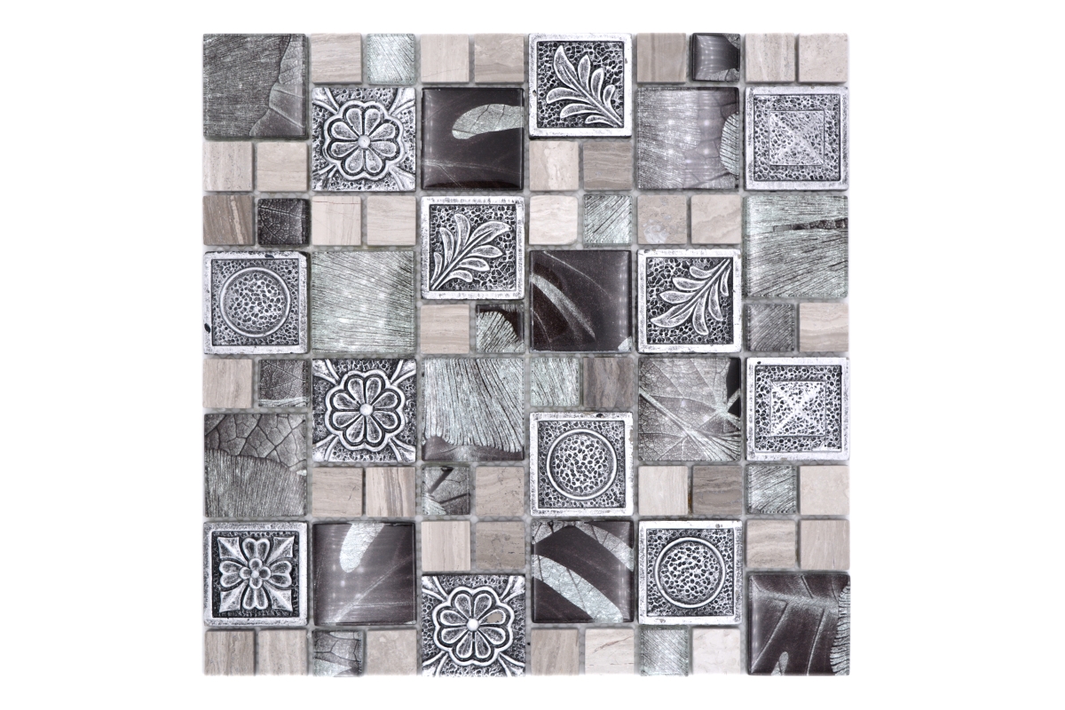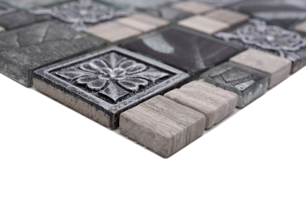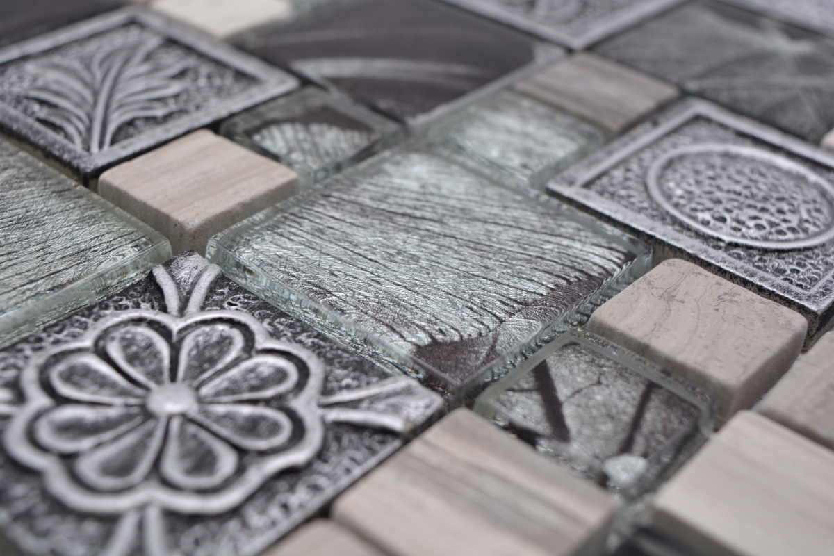 All mosaic areas, which are sometimes exposed by very small amounts of water. For example the backsplash in the kitchen or behind the sink.