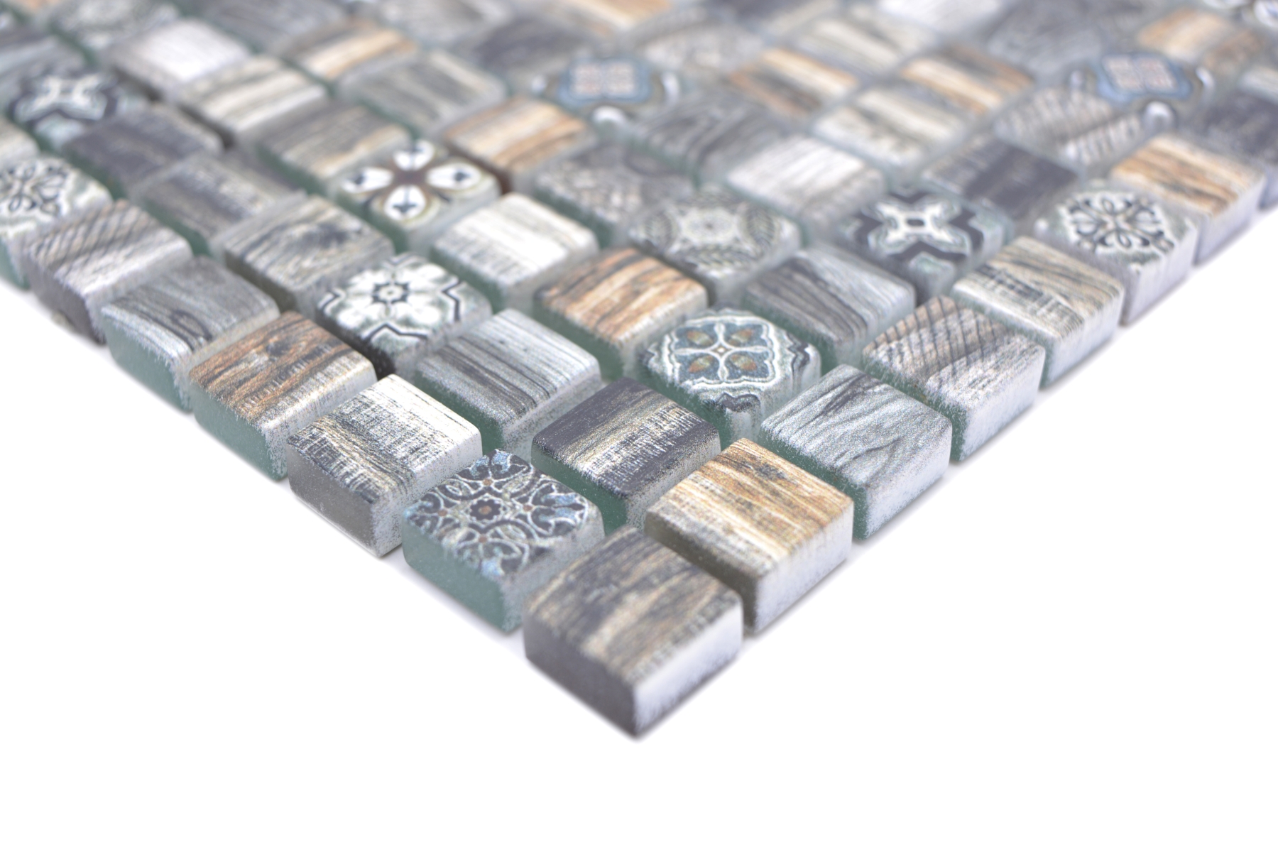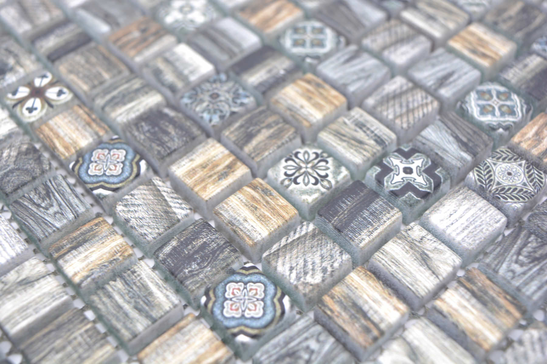 All mosaic areas, which are sometimes exposed by very small amounts of water. For example the backsplash in the kitchen or behind the sink.
