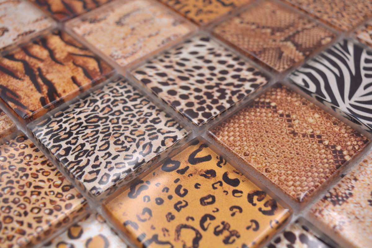 All mosaic areas, which are sometimes exposed by very small amounts of water. For example the backsplash in the kitchen or behind the sink.