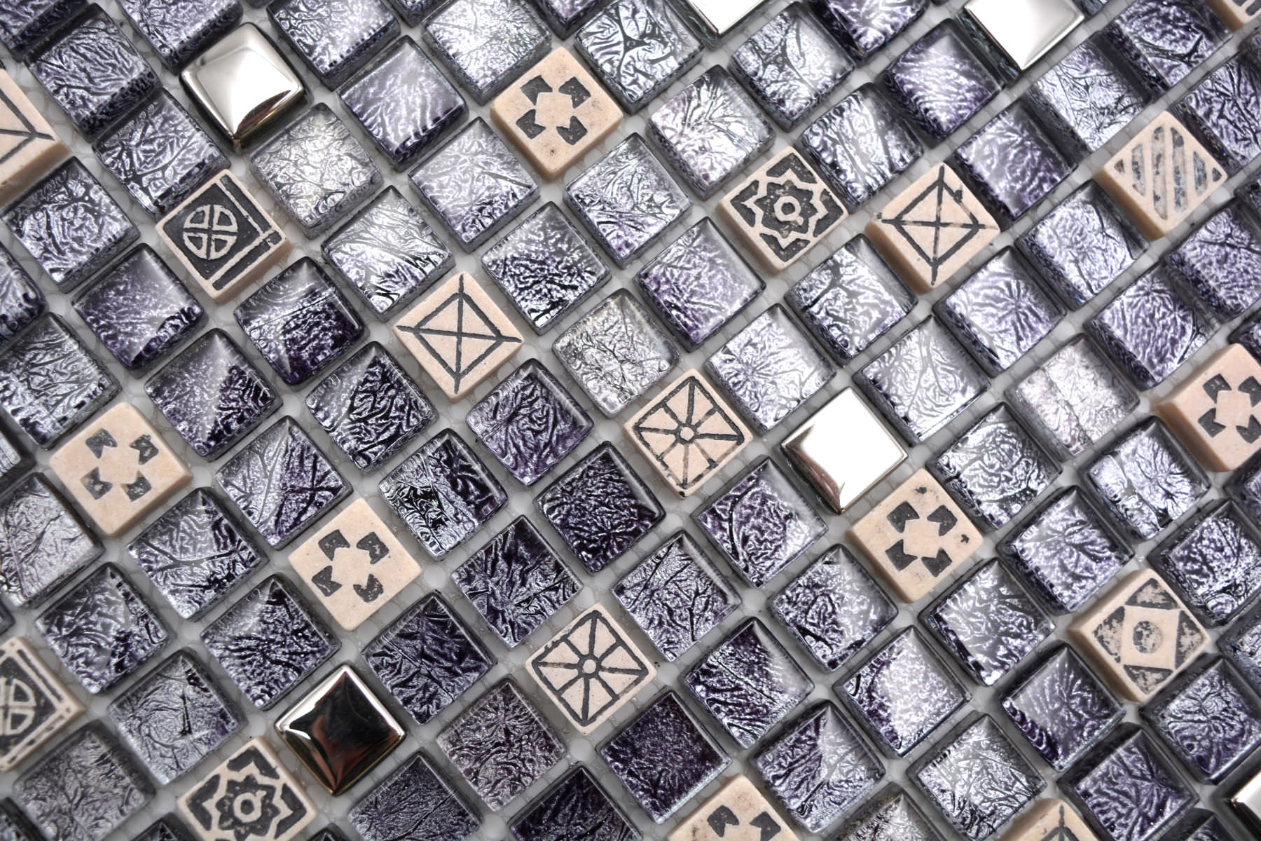 All mosaic areas, which are sometimes exposed by very small amounts of water. For example the backsplash in the kitchen or behind the sink.