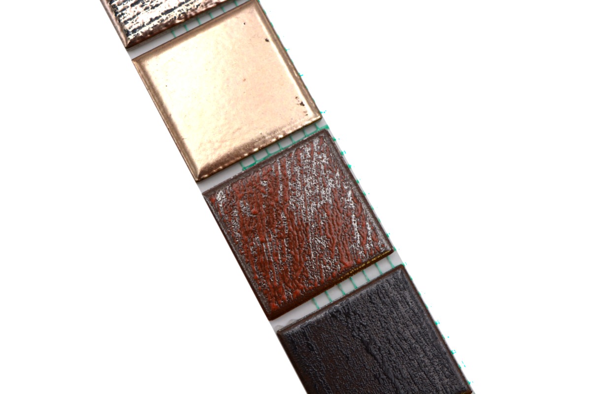 All mosaic areas, which are sometimes exposed by very small amounts of water. For example the backsplash in the kitchen or behind the sink.