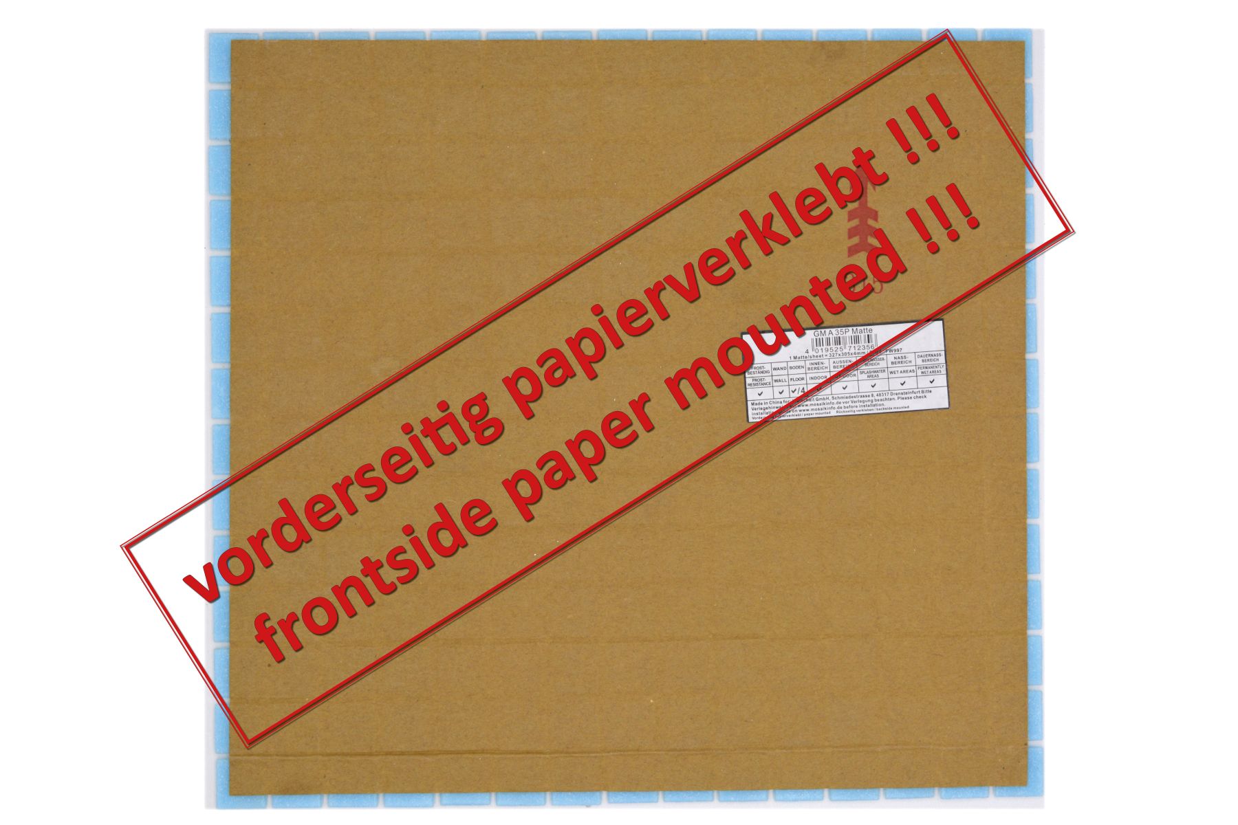 Vorderseitig Papierverklebt